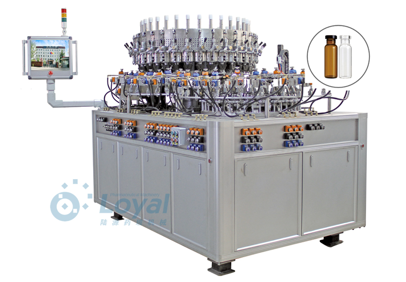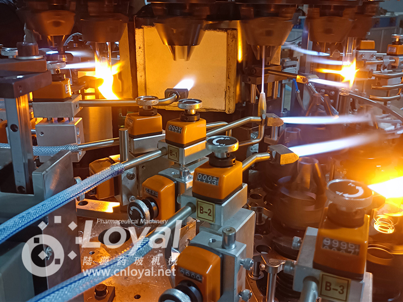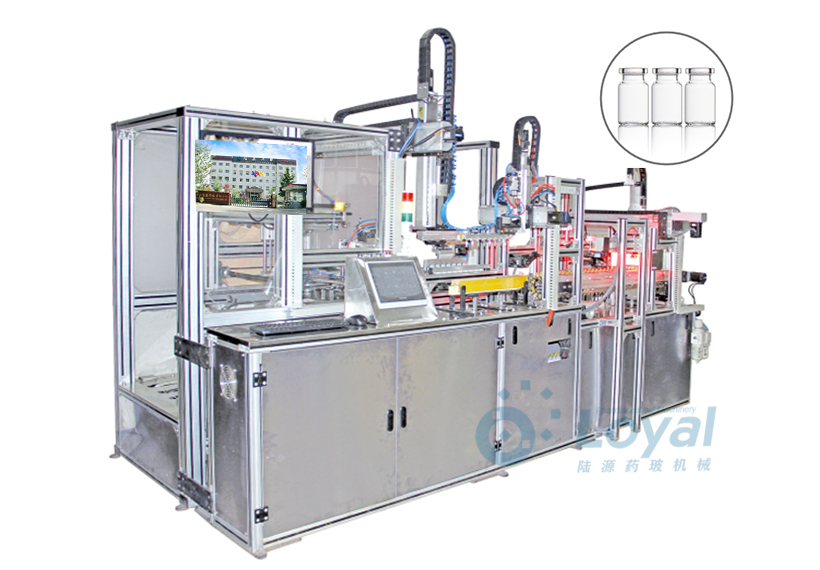 西林瓶生產(chǎn)線包括:自動上管、自動成型、經(jīng)機械手轉(zhuǎn)換至前端檢測線(也叫生產(chǎn)管控)、檢測線檢測的項目:1、瓶口內(nèi)外徑 2、瓶身長短 3、瓶身外徑 4、瓶口邊厚 5、瓶底內(nèi)凹尺寸檢測;經(jīng)檢測后的合格品再用機械手夾盤轉(zhuǎn)換至退火爐網(wǎng)帶上,經(jīng)高溫減除應(yīng)力后再降溫,通過氣動吸盤將回火后的小瓶轉(zhuǎn)換至后端檢測線,后端檢測(也是重檢也叫終檢),經(jīng)后端拍照檢測項目